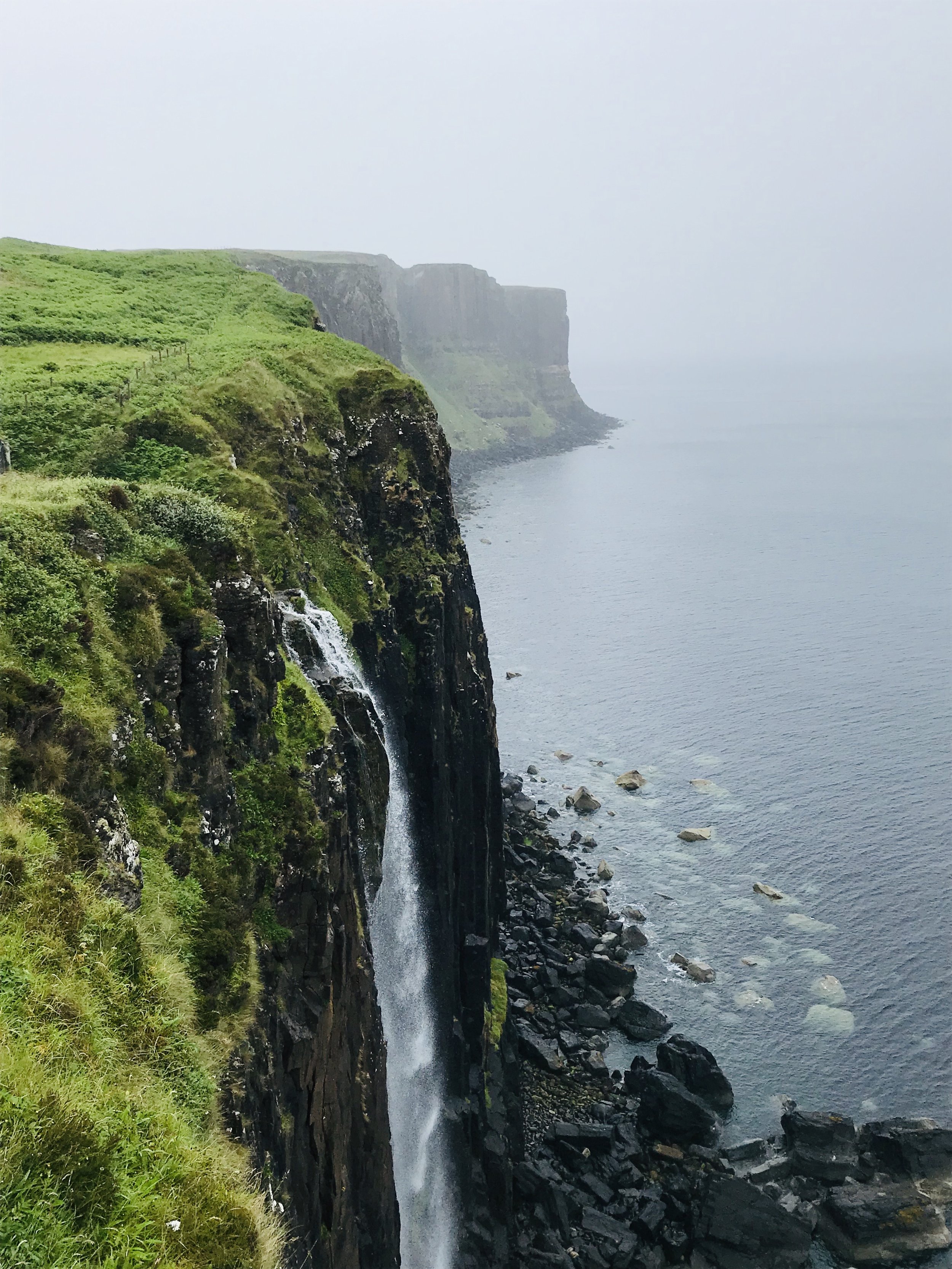 Mealt Falls, cascading from the cliffs at Kilt Rock on the Isle of Skye.